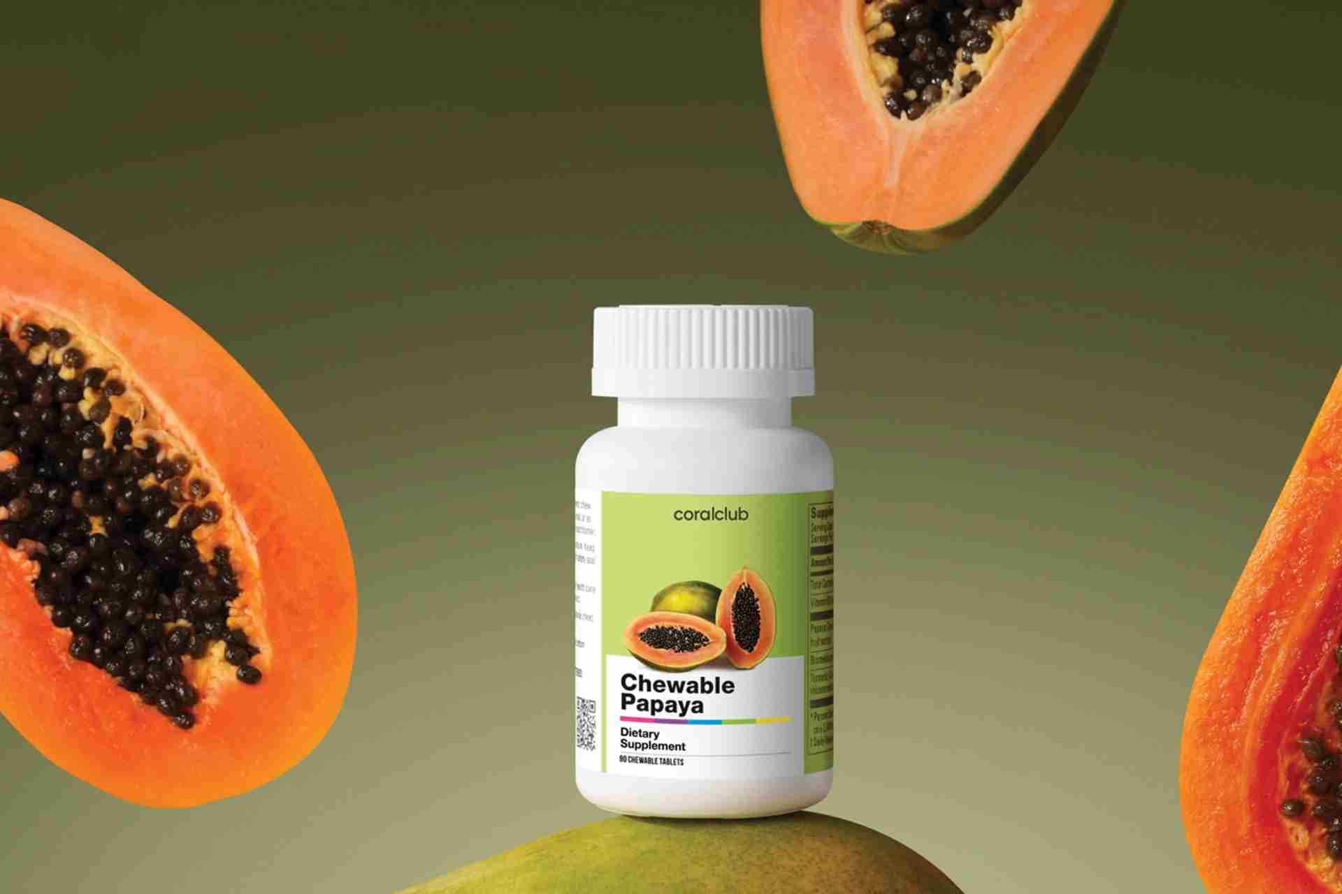 The juicy papaya pulp contains some vitamins, minerals and plant enzymes, of which papain is the most valuable. Like bromelain, papain is a proteolytic enzyme that may improve and support digestion and assimilation of protein foods.