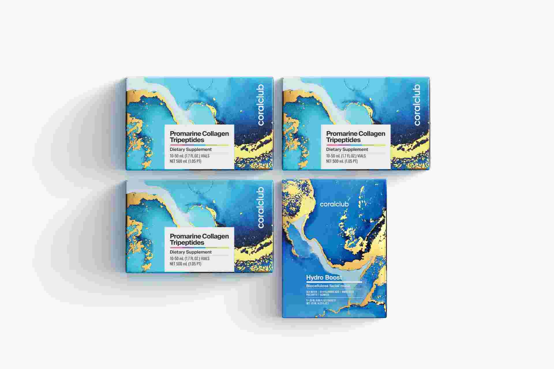 Promarine Collagen Tripeptides Set (1-month course) & HydroBoost biocellulose face masks (5 sachets)